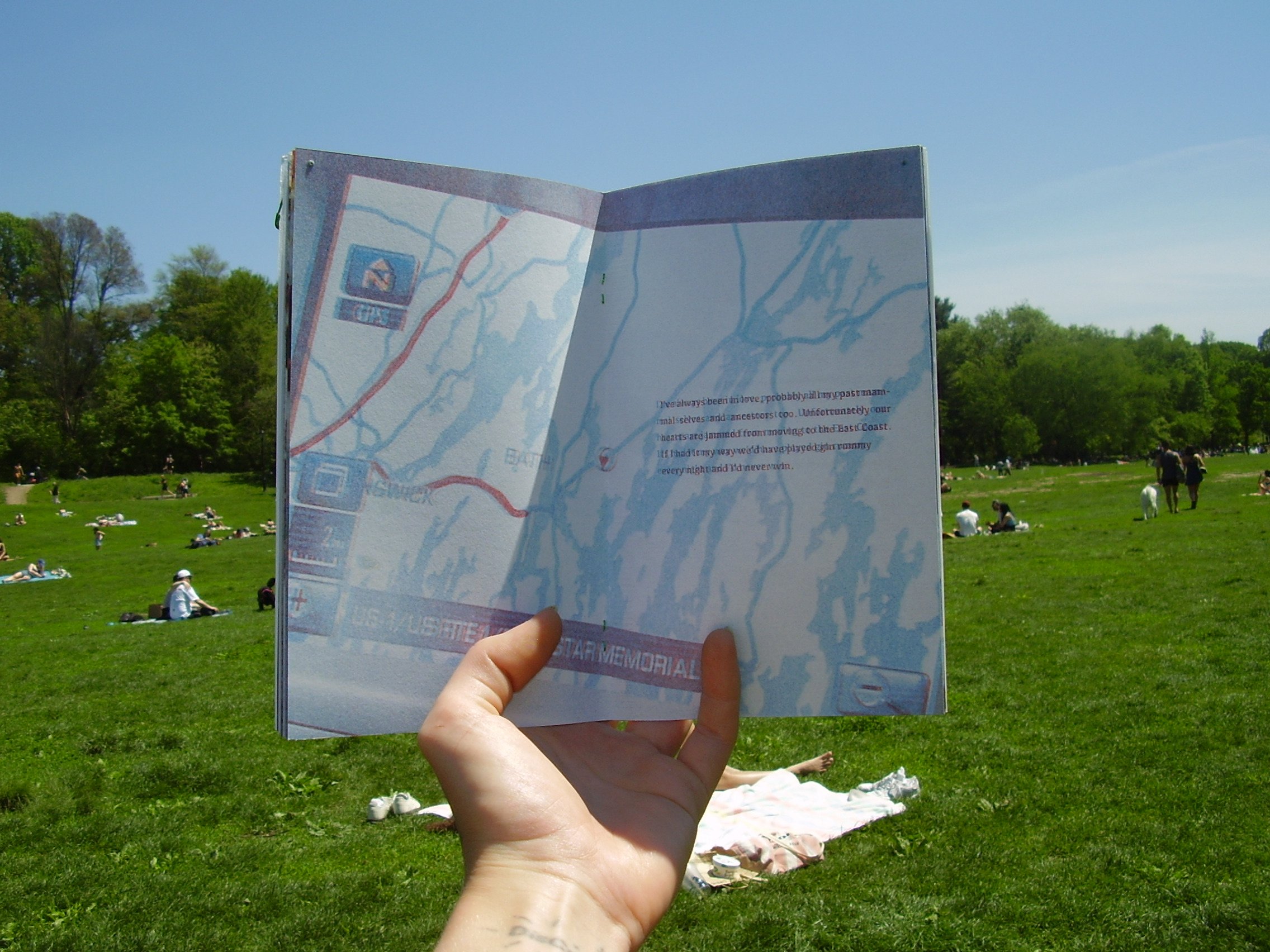 First edition of 50. Printed in sunflower, crimson, and blue. 30 pages with green safety pin.